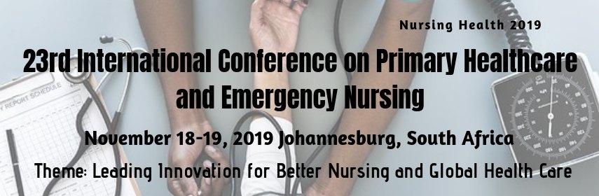 “23rd International Conference on Primary Health Care and Nursing (Nursing Health 2019 ) to be held during November 18-19, 2019 Johannesburg, Soth Africa. This two-day event will include expert keynote talks, symposium and plenary lectures, Poster sessions, Young Researchers Forum, Exhibitions, B2B Meetings, Scientific networking etc.